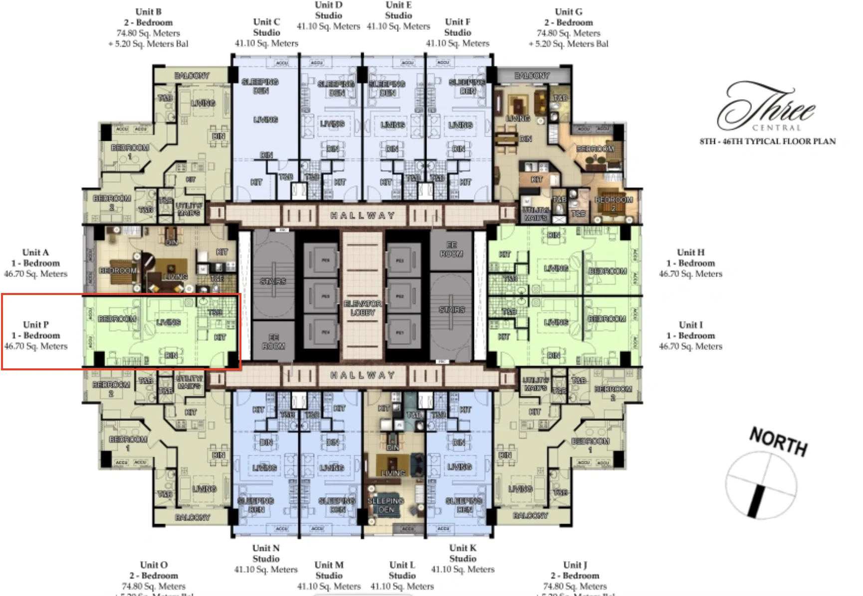Condominium for Sale in THREE CENTRAL located in Makati City with 1 Bedroom bedrooms, 1 bathrooms, 46.70sqm floor area.